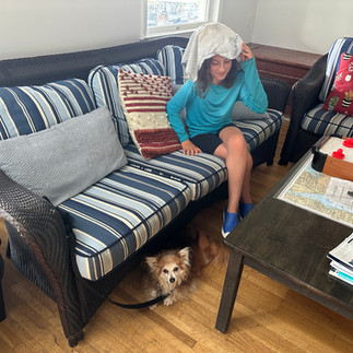 Many of the photos in this essay speak to the charm of Deb's constant companion and beloved Horseshoe mascot, Vinny. Not only does he shadow Deb as she navigates the porch during Junior Sailing season, but he has managed to become an honored member among members. He is particularly attentive to those who may enjoy a snuggle.